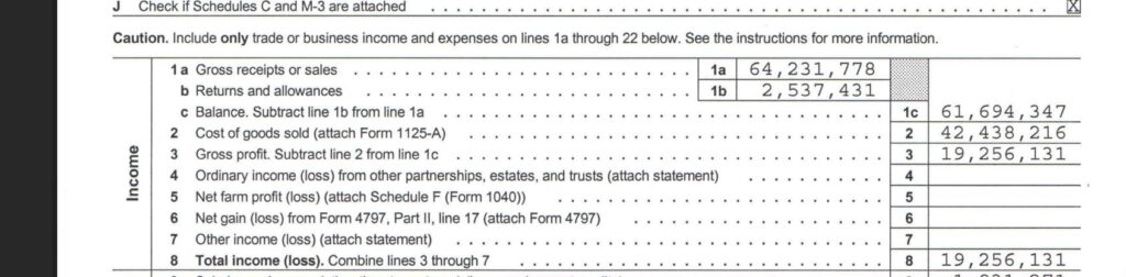 In fact, here’s a snapshot of a tax return showing the sales we processed in one of our years: